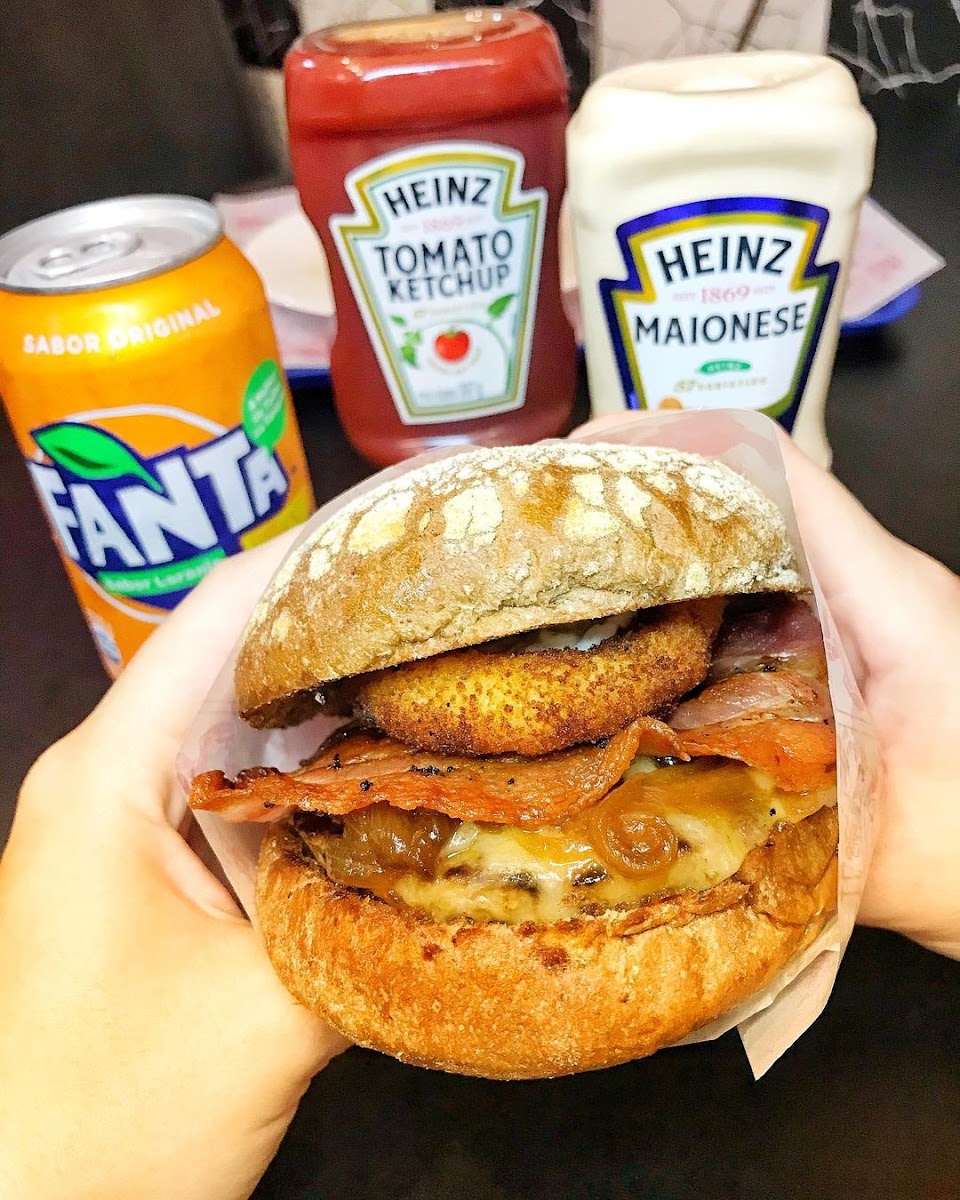 The menu is an exciting journey through innovative burger creations, each with its own unique character. Among the highlights, the Kryptonita stands out with its rich combination of Australian bread, a juicy 100g beef patty, gooey mozzarella cheese, caramelized onions, crispy bacon, potato onion rings, and a drizzle of garlic mayonnaise. Priced at R$24.99, it's a feast for the senses that comes complemented with sachets of Heinz mayonnaise and ketchup for those who enjoy a classic touch.
